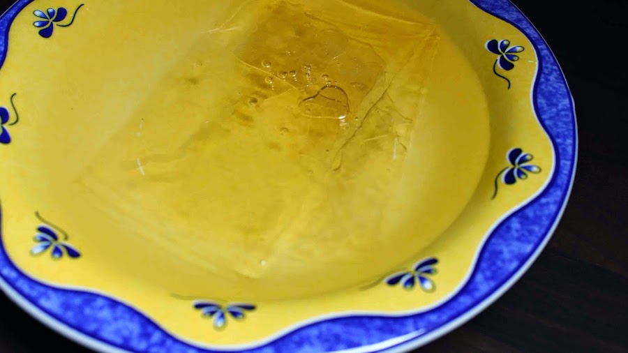 2. Ahora ponemos las hojas de gelatina en agua fría para hidratarlas durante unos 10 min.