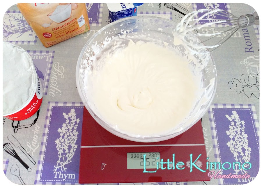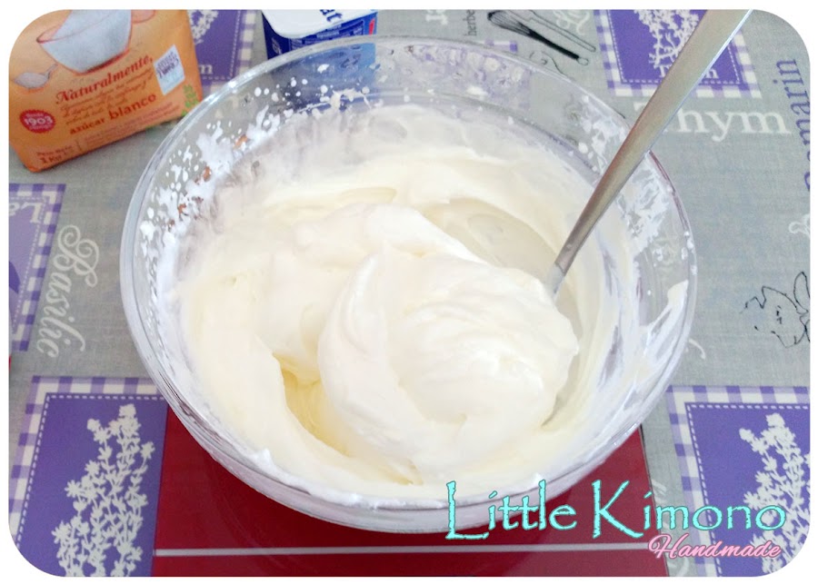 1. Montamos la nata (crema de leche) (que debe estar bien fría) con 1 cucharada de azúcar y reservamos.