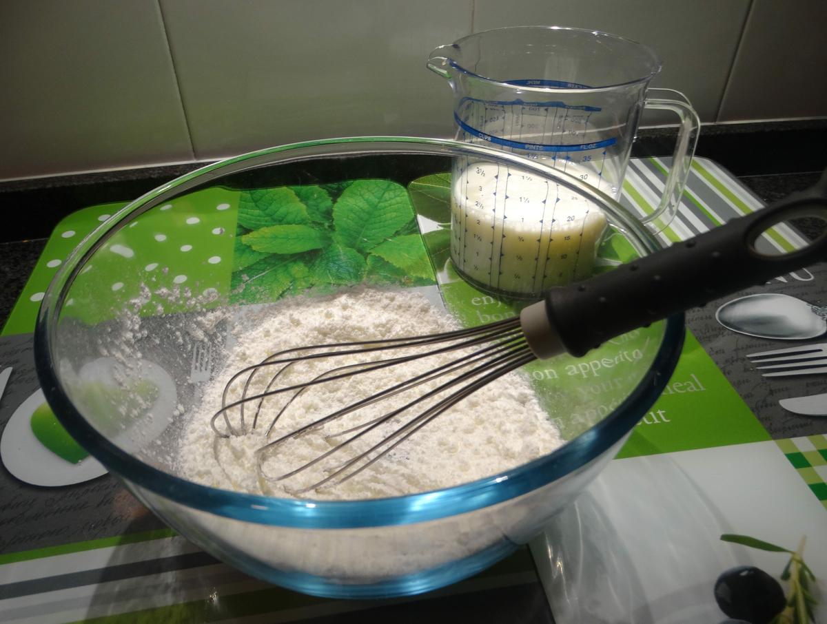 En un bol mezclamos la harina de maíz con la mitad del azúcar (dos cucharadas soperas), removemos bien e incorporamos la leche fría poco a poco, mezclamos y lo añadimos a la cazuela. Cocinamos a fuego medio hasta que espese.