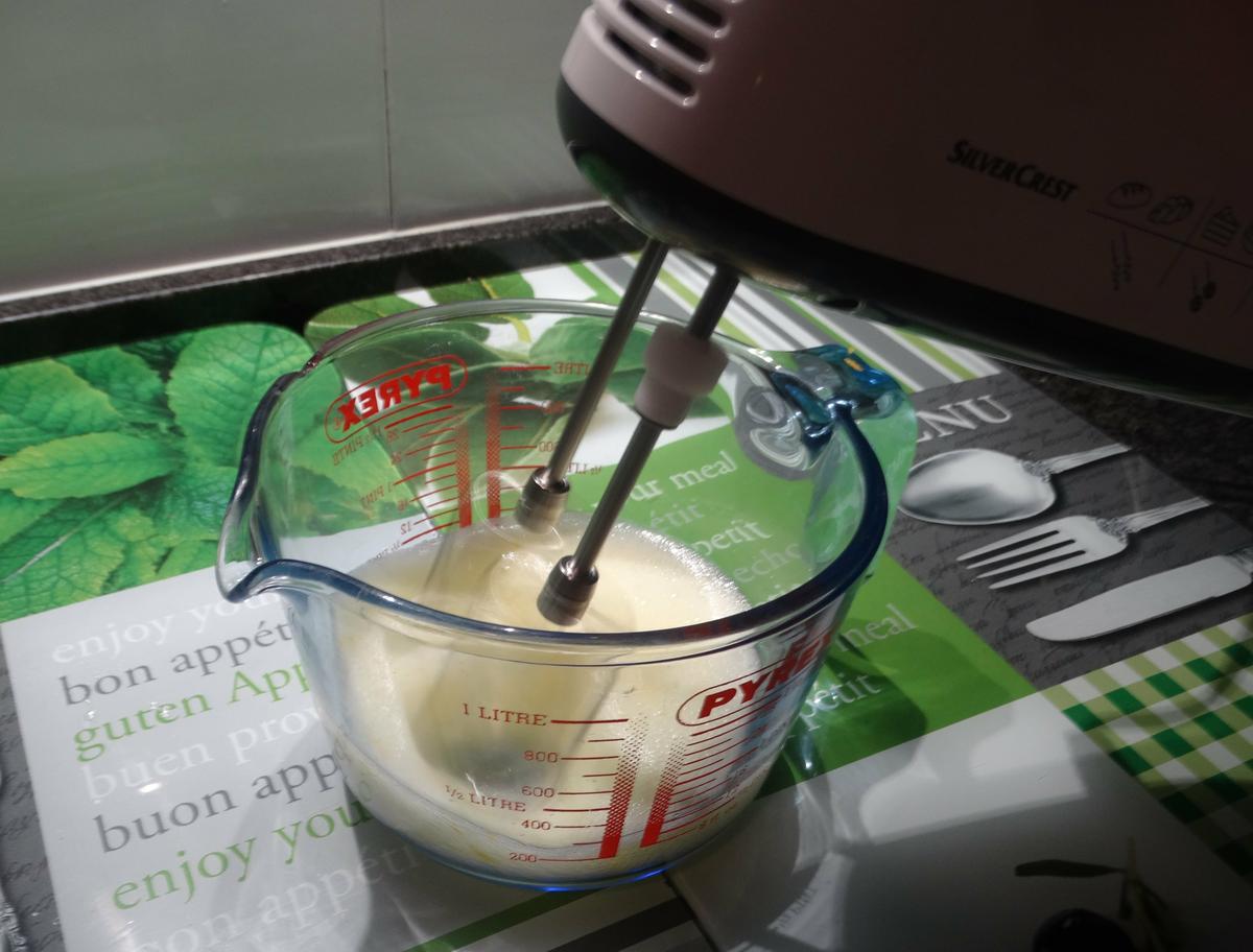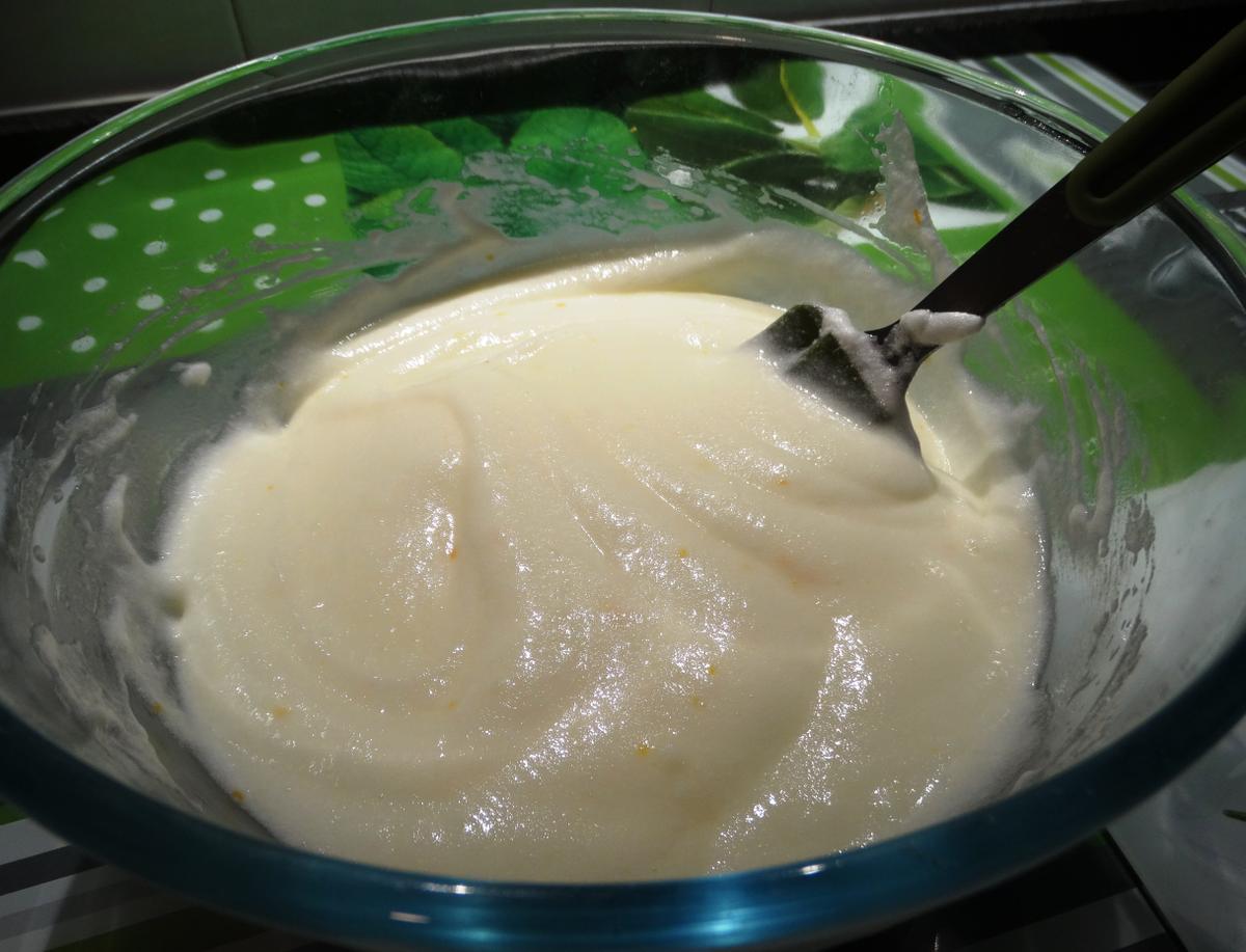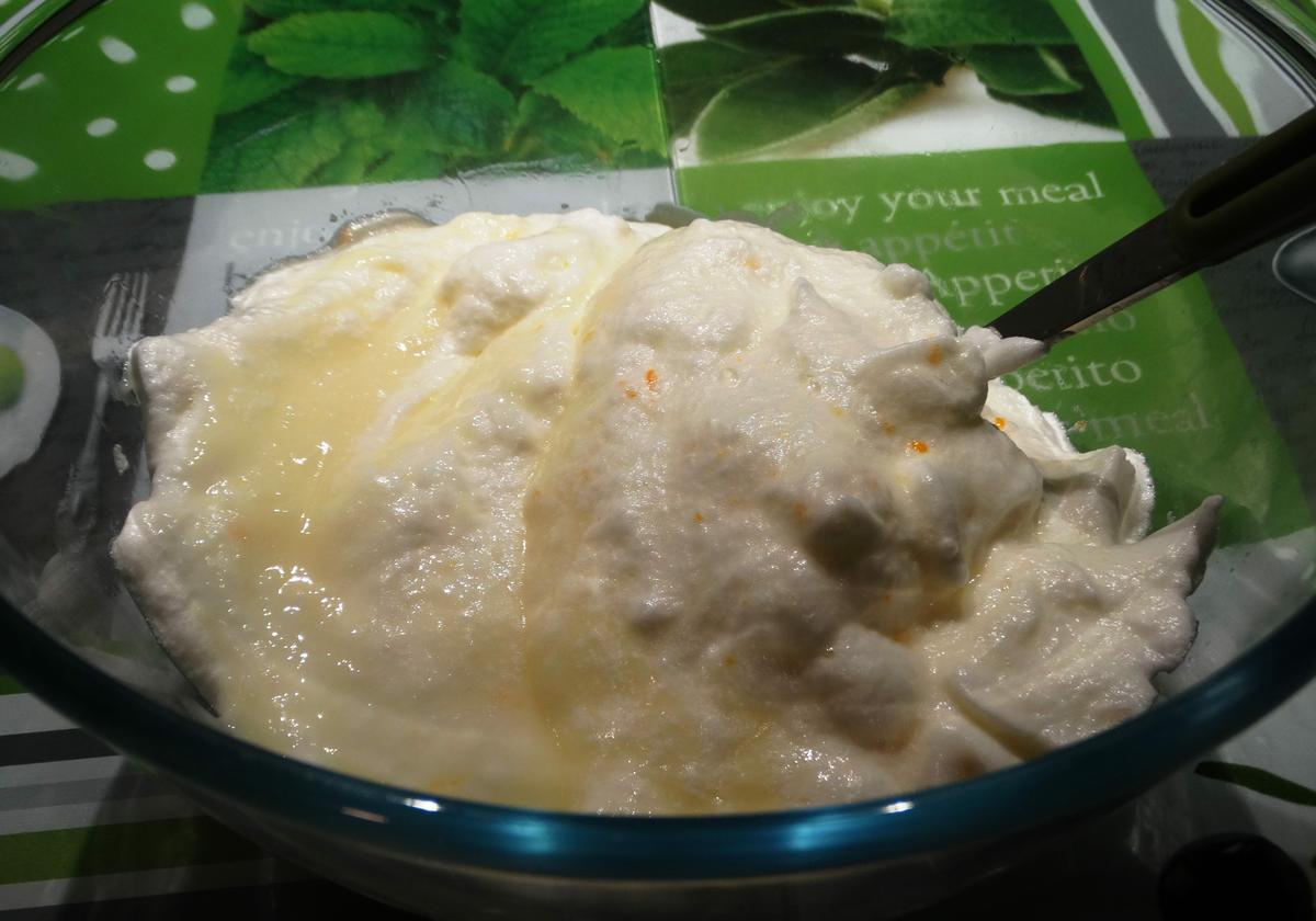 Mientras se enfría la crema vamos a montar las claras con la otra mitad del azúcar y la ralladura del resto de la naranja.