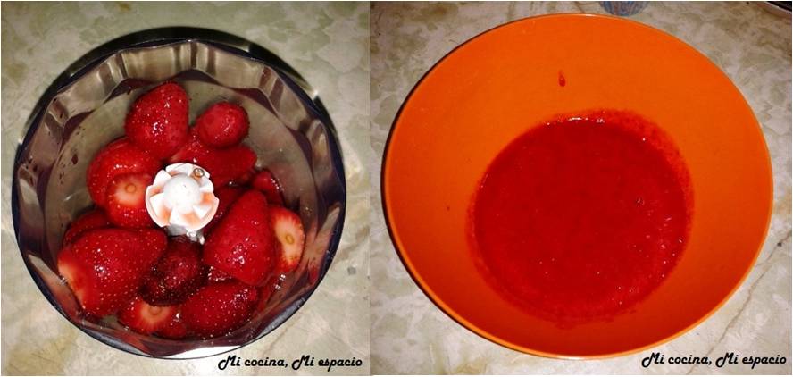Preparar la pulpa de frutillas. Yo las coloqué en una picadora y me aseguré de triturarlas bien.