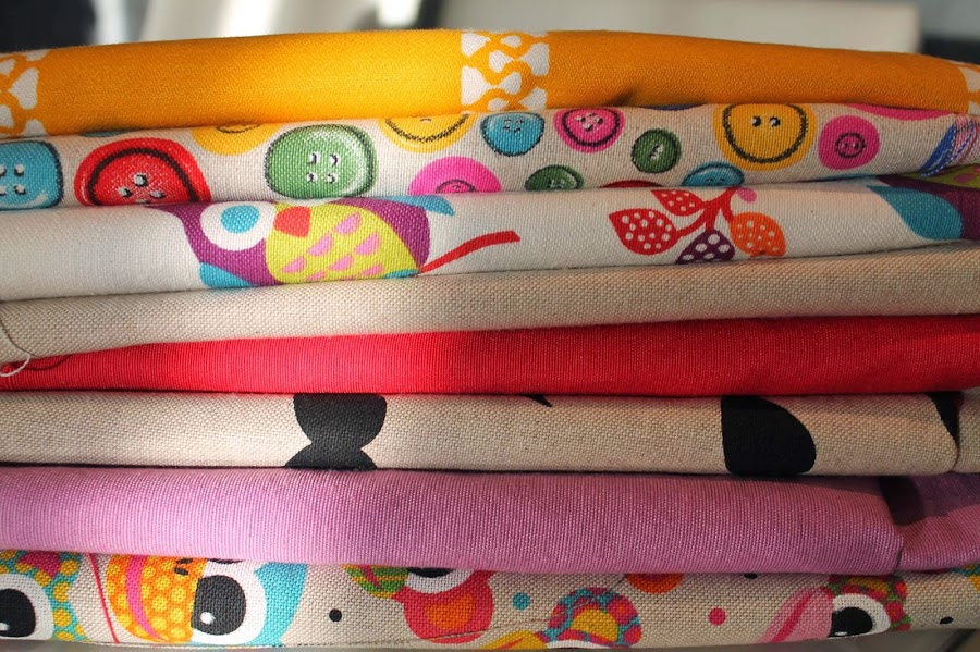 ! Lo que empezó como "pues yo iría por Pontejos a comprar una tela", y un "ah pues yo también, si quieres vamos!" acabó así, como veis, un cerro de telas esperando a ser cortadas, hilvanadas, cosidas y dadas la vuelta! Como me dijo el chico que me vendía una de ellas: "que quede chuli!"