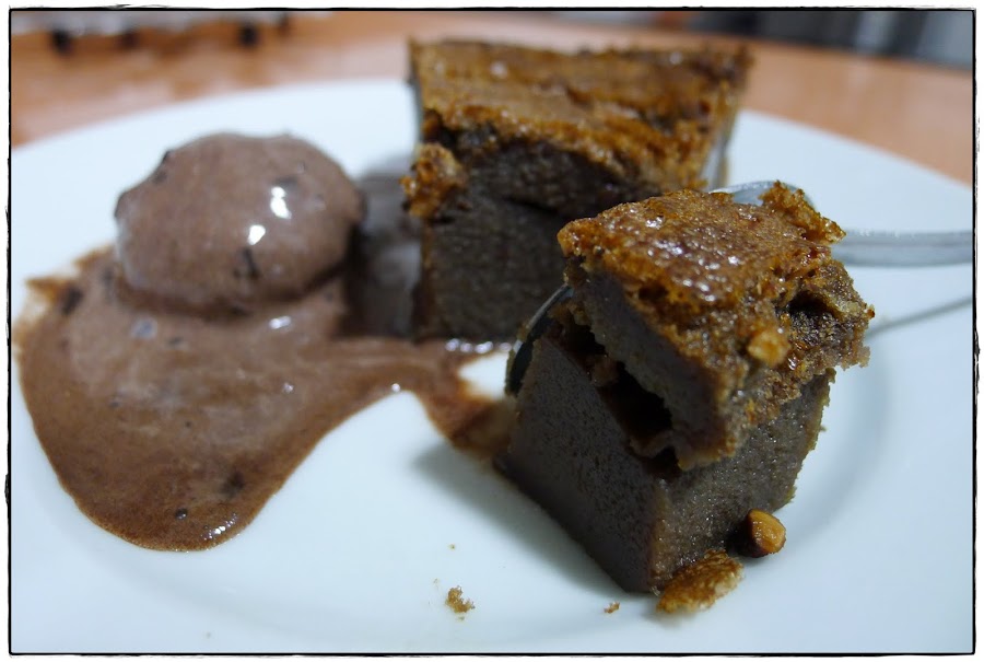 este pastel de chocolate lo vi en estos dos blogs:http://micocinaeschicunini.blogspot.com/2011/07/muerte-por-chocolate.html y http://tomillolaurelyotrascosasdecomer.blogspot.com/2011/08/muerte-por-chocolate.html no se decir en que sitio me fije antes,pero como soy una gran amante del chocolate desde luego no me dejo indiferente,ademas fue la receta ganadora del concurso del blog de tito(la cocina sin complicaciones),al mejor postre,asi que la tenia que probar si o si!! yo la unica modificacion que le hice es que le cambie el chocolate de postres por uno que tenia en casa de mi tierra,ceuta(maruja) con avellanas,lo demas igual.