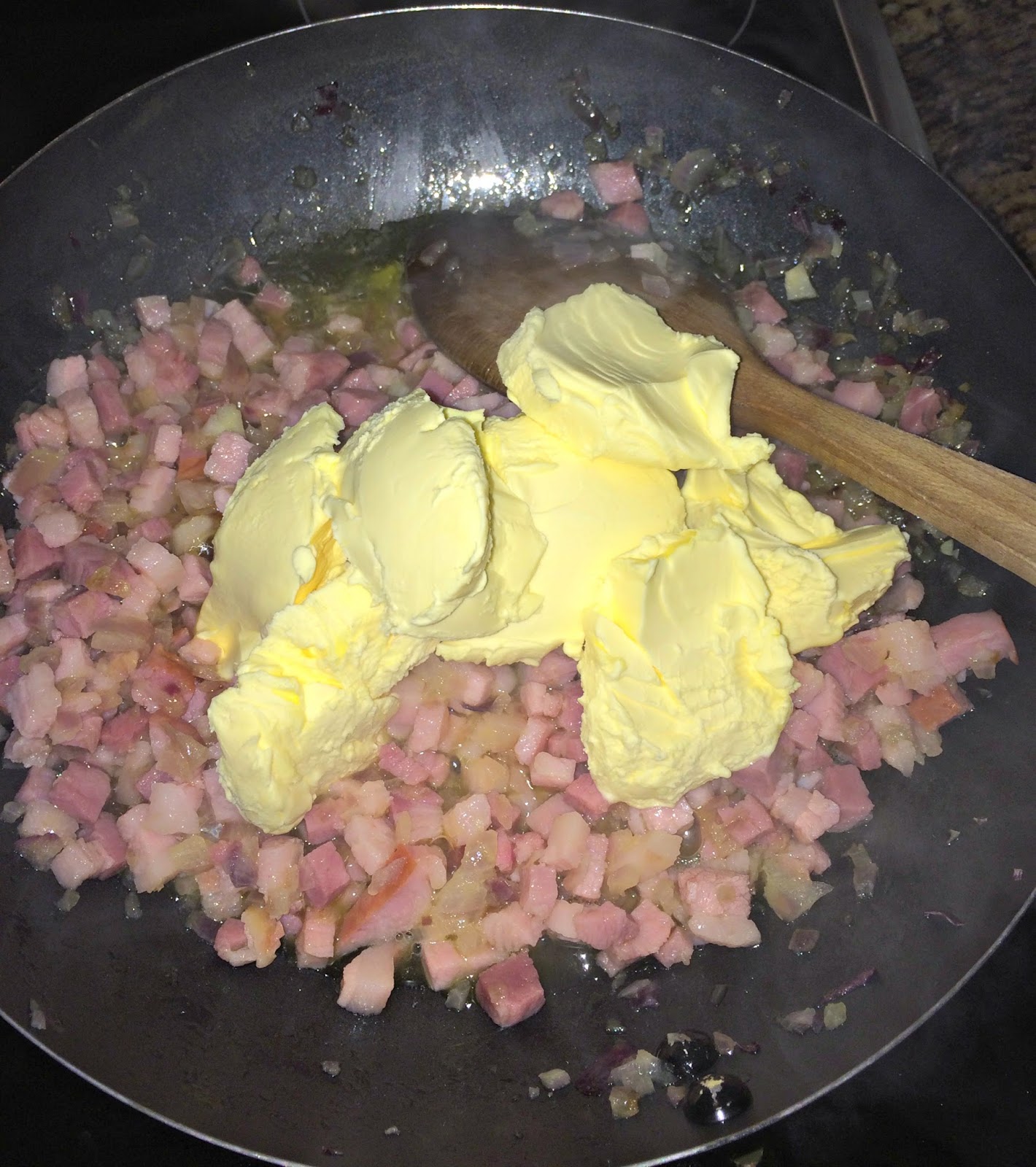 Una vez esté el bacon a nuestro gusto, bajamos el fuego y añadimos la mantequilla para que se derrita en la sartén. La dejaremos lo justo que se derrita y se mezcle con el conjunto.