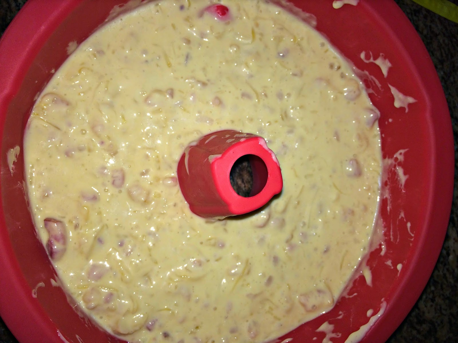 Una vez tengamos la masa preparada, vamos a montar el molde. En mi caso es de silicona, si no es así hay que untarlo con un poco de mantequilla y salpicarlo de harina, para que no se pegue en el horno.