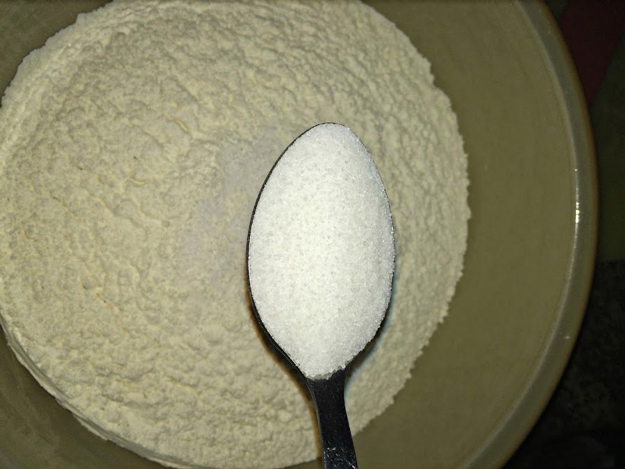 Primero, como siempre, tamizamos la harina en un bol, al que añadiremos la sal y el azúcar. Precalentamos el horno a 180ºC.