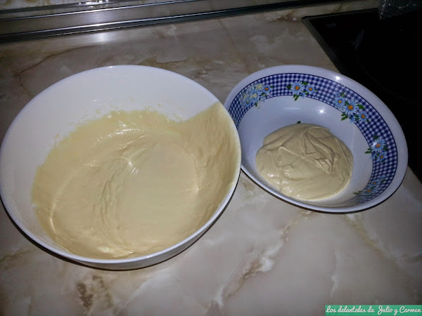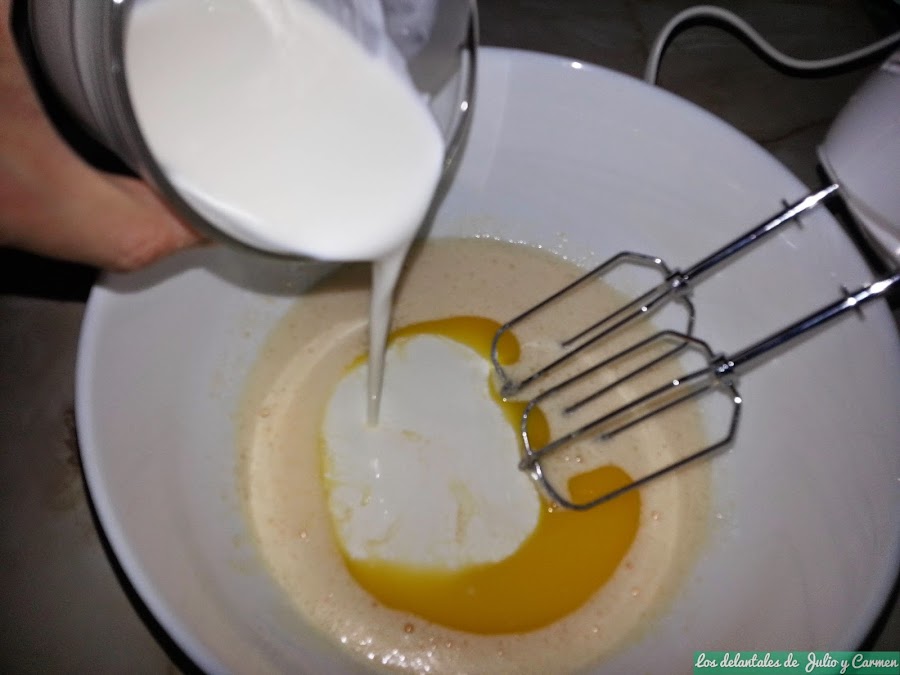 Añadiremos poco a poco la harina junto con la levadura y el bicarbonato previamente tamizado y removemos hasta que se forme una masa homogénea.