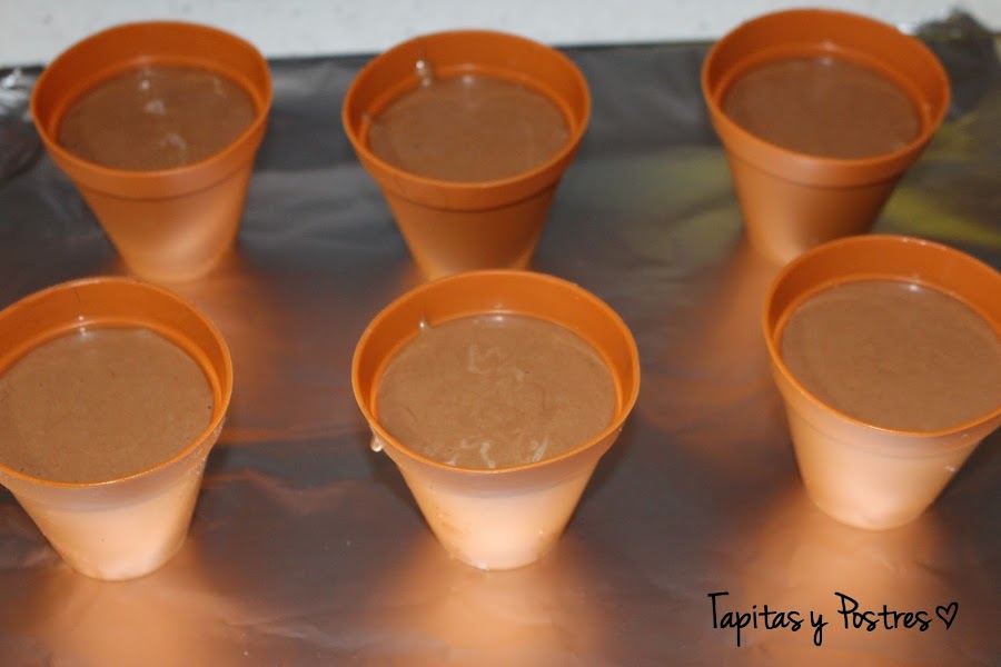 Vertemos la masa en los moldes. No los lleneis hasta el filo que se salen, poned algo menos de lo que yo he puesto. A mi me salieron seis con estas cantidades. Al horno.