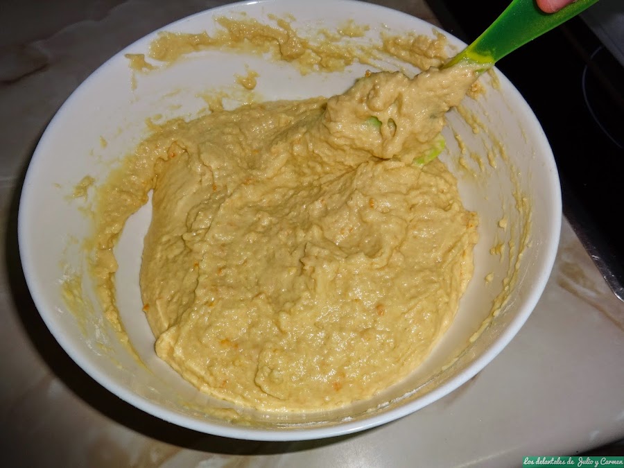 Vertemos la masa en los moldes, rellenando unas 3/4 partes de estos.