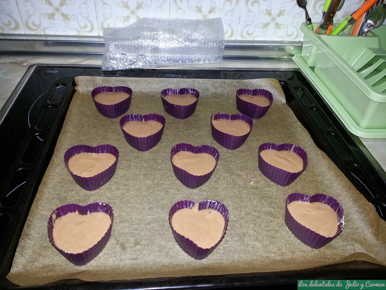 Las primeras que preparamos, fueron las ya conocidas por todos los delantaleros, Muffin de fresas y crema de queso y las Muffin de choco-blanco y choco-negro. Dos variedades que nos siguen pareciendo deliciosas, pero que no son las únicas que hemos probado ni preparado. La que hoy compartimos con vosotros, es una de las variedades que mas ganas tenia de presentaros, y una de las preferidas de Carmen, debido a su afición a este tipo de cacao en polvo, al igual seguro que muchos de vosotros.