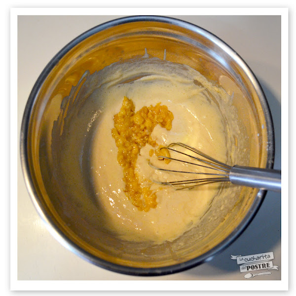 4. Mezcla bien hasta tener una masa homogénea, sin grumos ni restos de harina.