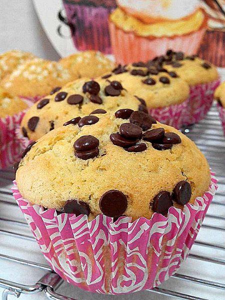 MUFFINS CON CHIPS DE CHOCOLATE Y PERLAS DE AZÚCAR