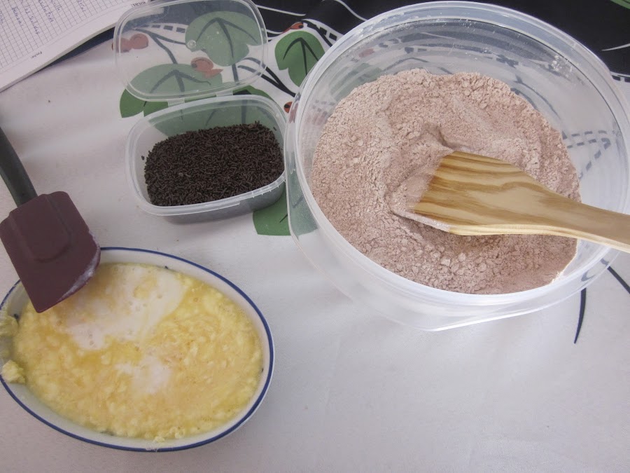 Mezclamos los liquidos con los sólidos y cuando esté todo mezclado, añadimos el chocolate,no es necesario batir, solo unir.