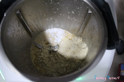 Agregamos la harina de almendra, la leche de almendras, el aceite y la sal. batimos bien 30 segundos a velocidad 4.