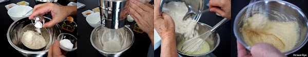 En otro recipiente tamizar la harina, junto a la levadura, el bicarbonato y la sal en un bol.