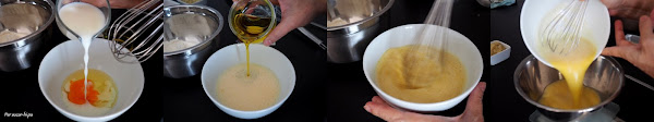 En un bol batir el huevo junto con la leche y a continuación añadir el aceite y mezclar bien.