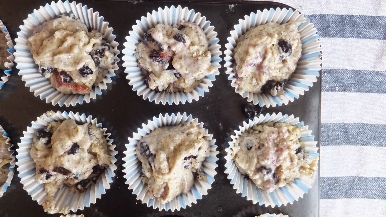 7. Rellena las cápsulas de papel sin llegar al borde y hornea durante 20-30 minutos dependiendo del horno y del tamaño de los muffins.