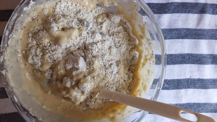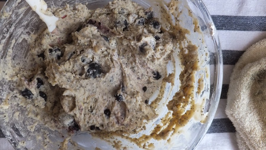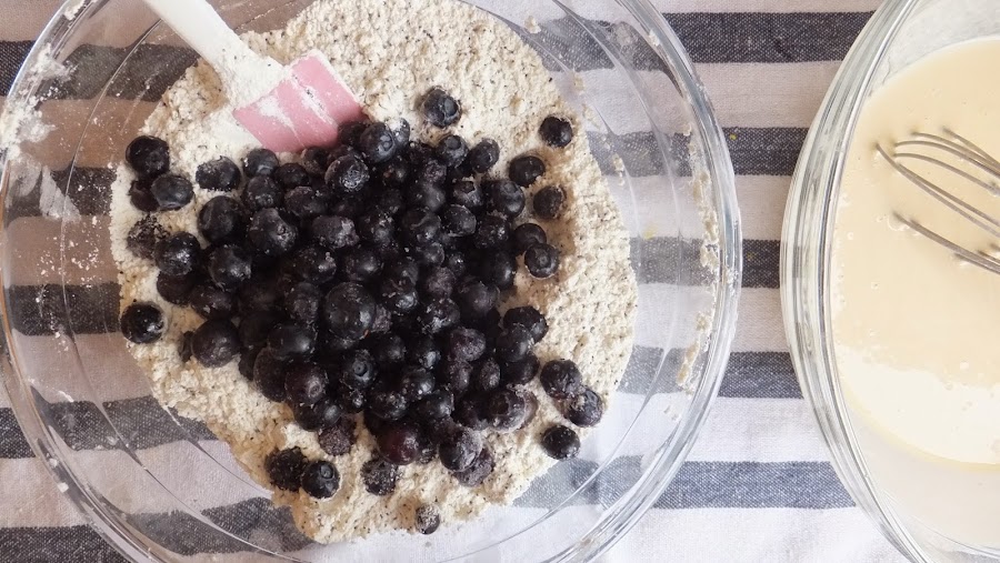 5. Cuando esté todo bien mezclado añade los arándanos y mezcla con cuidado hasta que queden bien distribuidos.