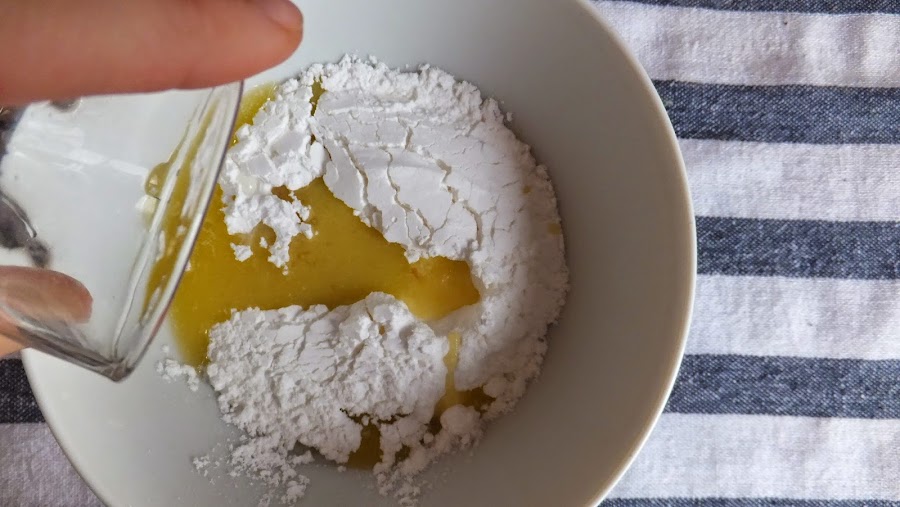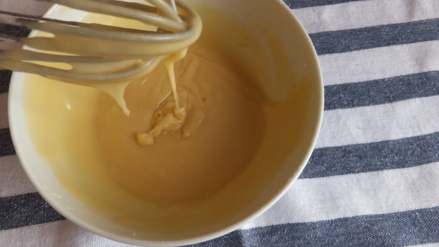 8. Cuando estén listos deja que se enfríen o templen, dependiendo del nivel de paciencia que tengas, y prepara el glaseado mezclando todos los ingredientes con una varilla. (Si ves que la mezcla se corta, cosa que a mi me ha pasado, mezcla con una minipimer y todo volverá a su cauce).