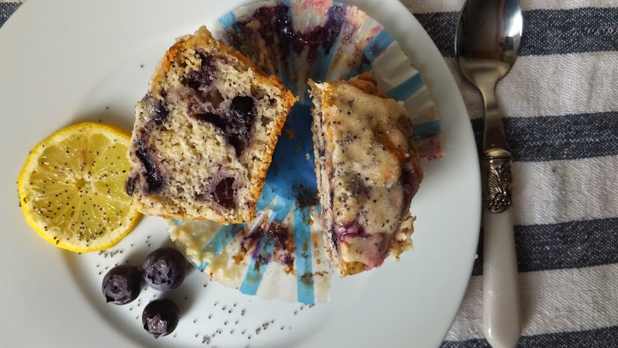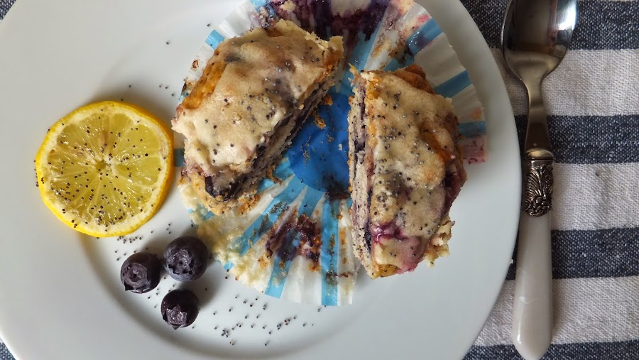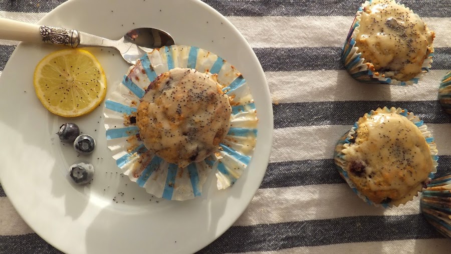 {RECETA DE MUFFINS DE ARÁNDANO CON SEMILLAS DE AMAPOLA Y GLASEADO DE LIMÓN}