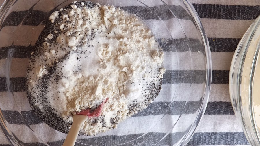 4. En otro bol mezcla la harina, el azúcar, la sal, la levadura y las semillas de amapola.