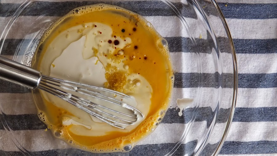 3. En un bol mediano bate el huevo y añade el aceite, el buttermilk casero y la vainilla. Mezcla todo hasta quede todo bien integrado. (Reserva)