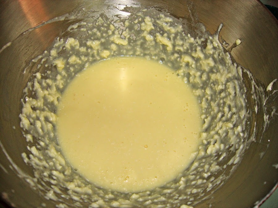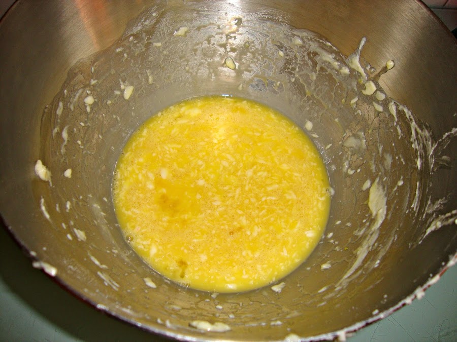 En un bol ponemos la mantequilla con el azúcar glass y batimos hasta que la mezcla claree y el azúcar esté integrado, luego añadimos los huevos uno a uno.