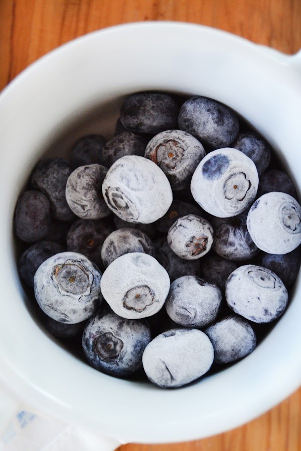 En primer lugar, un buen puñado de arándanos. ¡Frescos!