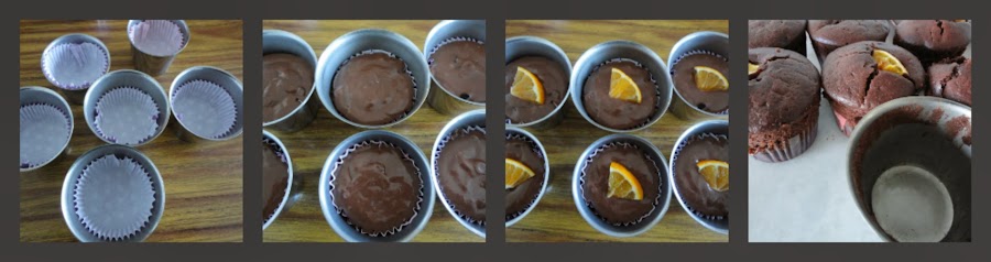 Por otro lado, cortamos las mandarinas en triángulos y, colocamos uno en cada uno de los muffins, sin presionar demasiado para que no se hundan en la masa.