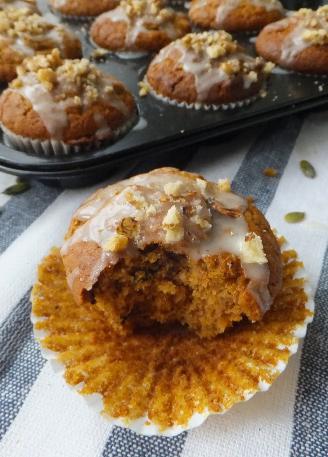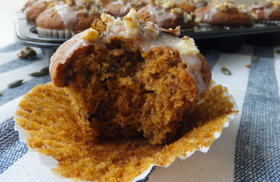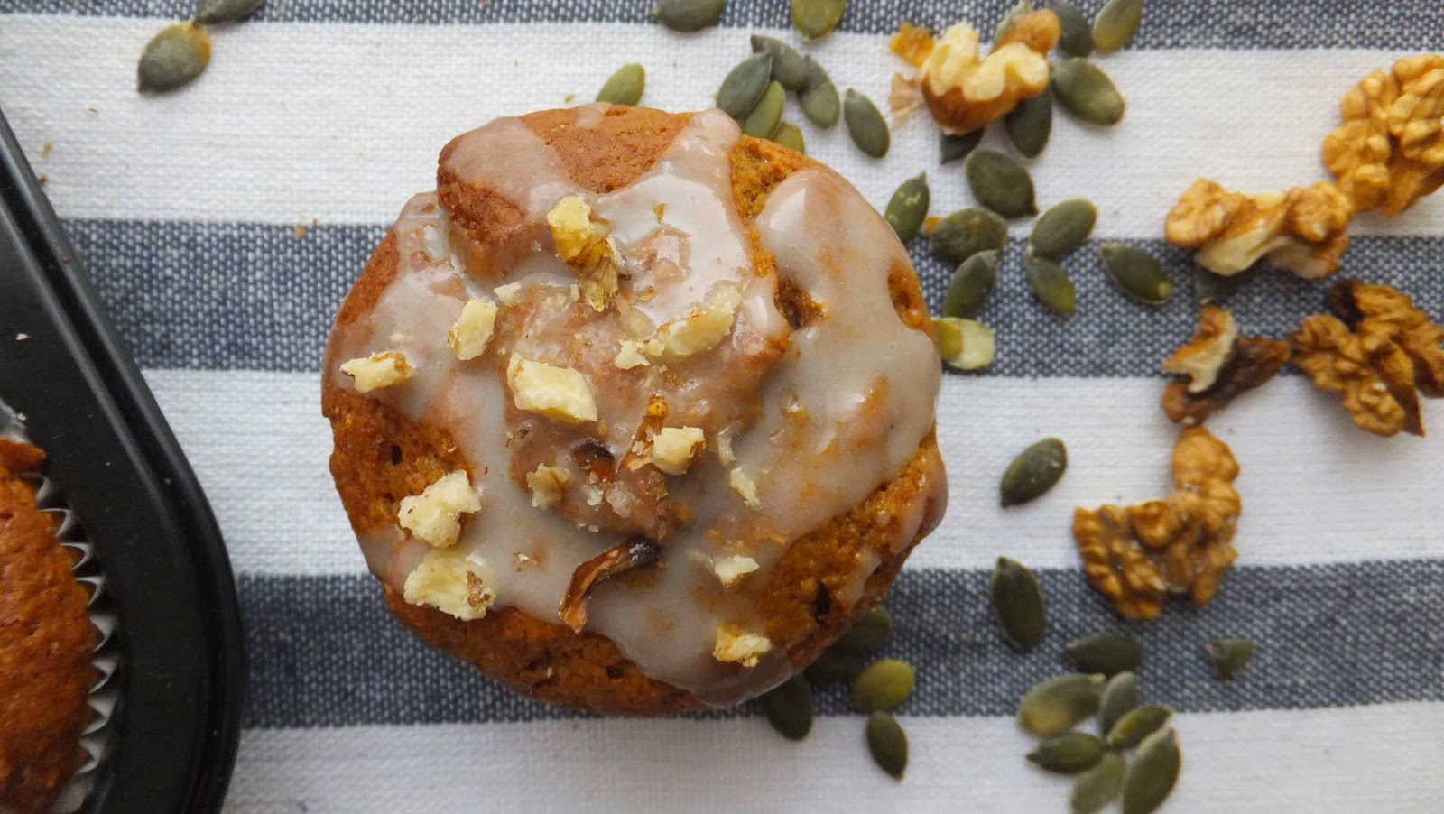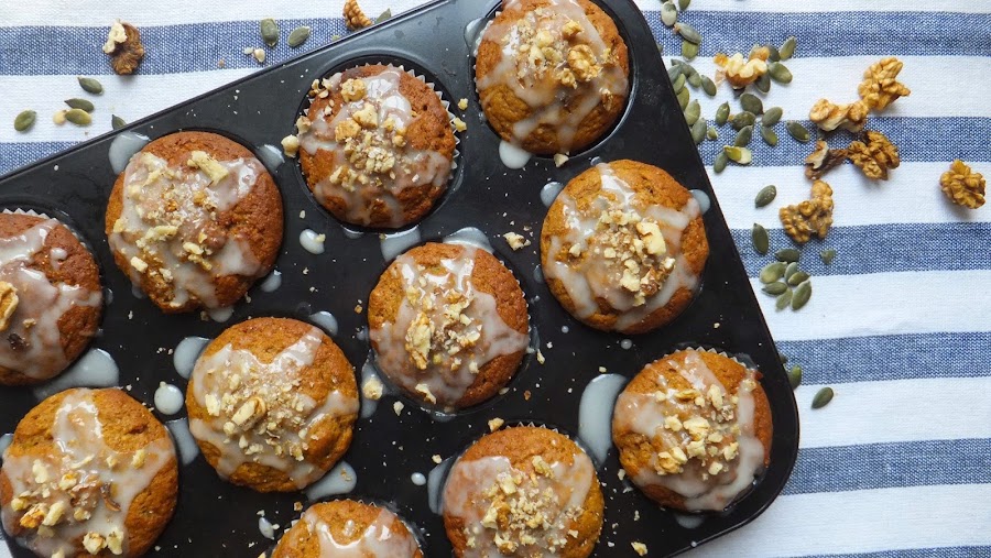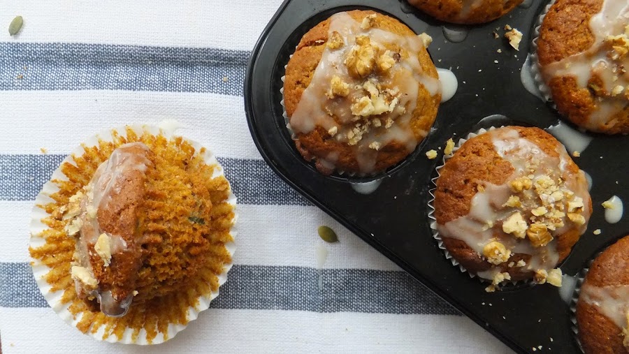 {MUFFINS DE CALABAZA INTEGRALES CON GLASEADO DE SIROPE DORADO}