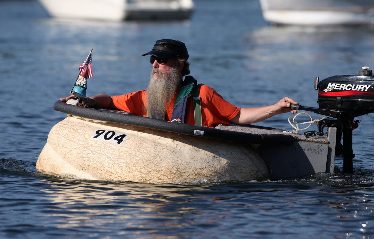 Lishness Tom conduce su bote hecho de una calabaza gigante durante la Regata Pumpkinboat en Damariscotta, Maine, EEUU, el 9 de octubre de 2011. Joel Page