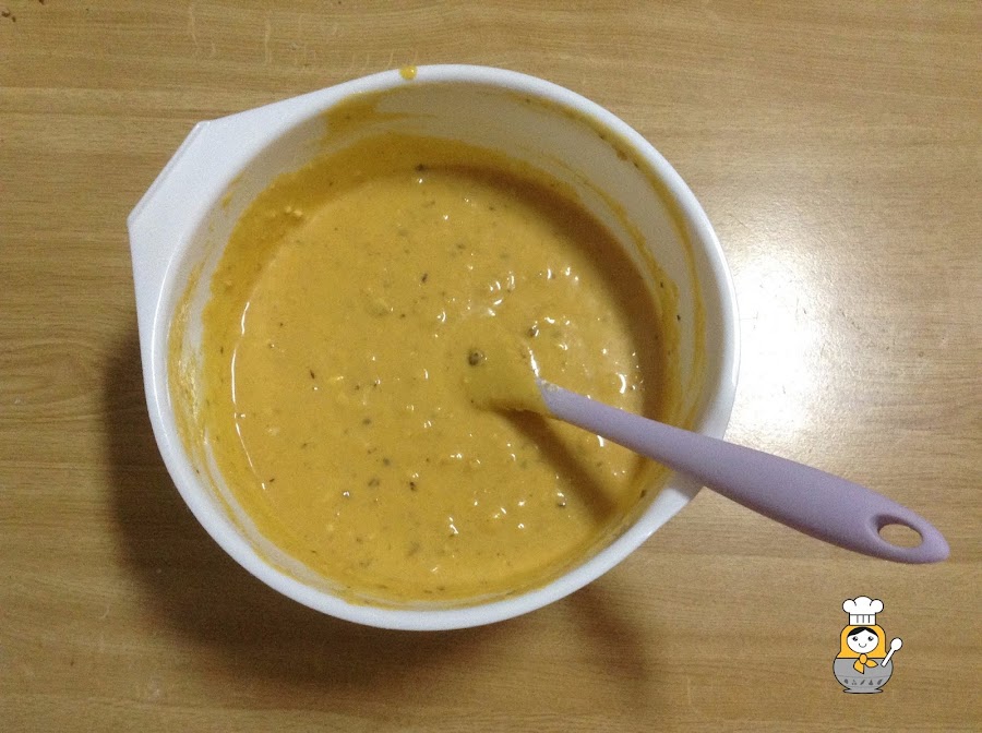 En un bol grande batimos los huevos, añadimos la mantequilla derretida, la leche y el puré de calabaza.