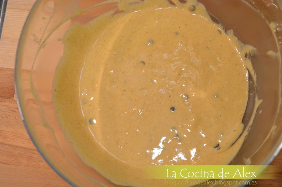 En un bol tamizamos la harina con todas las especias, la levadura y la sal. Incorporando con una espátula a toda esta mezcla el batido anterior.