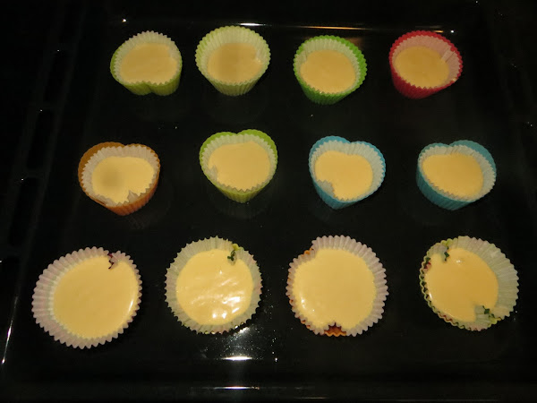 Precalentamos el horno a 180º, ahora rellenamos nuestras cápsulas de muffins y lo metemos durante diez minutos, los sacamos dejamos enfriar y ya están listos para comer.