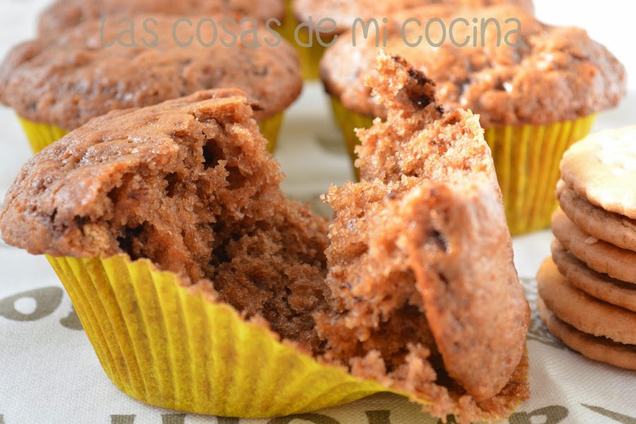 Troceamos las galletas en trozos pequeños, pero sin picarlas, para encontrarnos algún trocito al morder. Los incorporamos a la masa de las galletas.