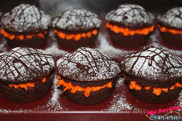 Cuando los muffins estén fríos los cortaremos por la mitad en horizontal, cogemos la nata (crema de leche) y la ponemos en una manga pastelera, la boquilla la dejo a vuestra elección.