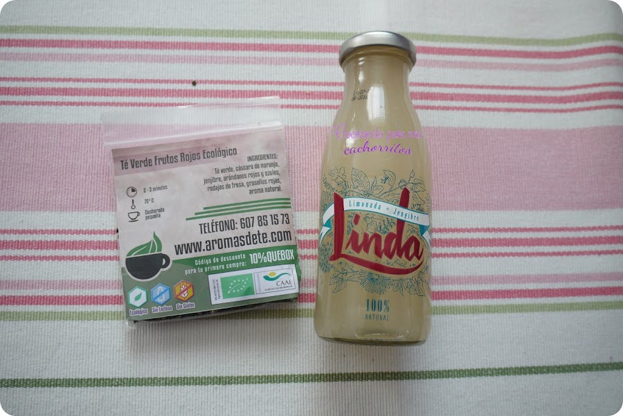 para refrescarnos, té ecológico de frutas rojos y limonada de jengibre sin azúcar (edulcarada con stevia)