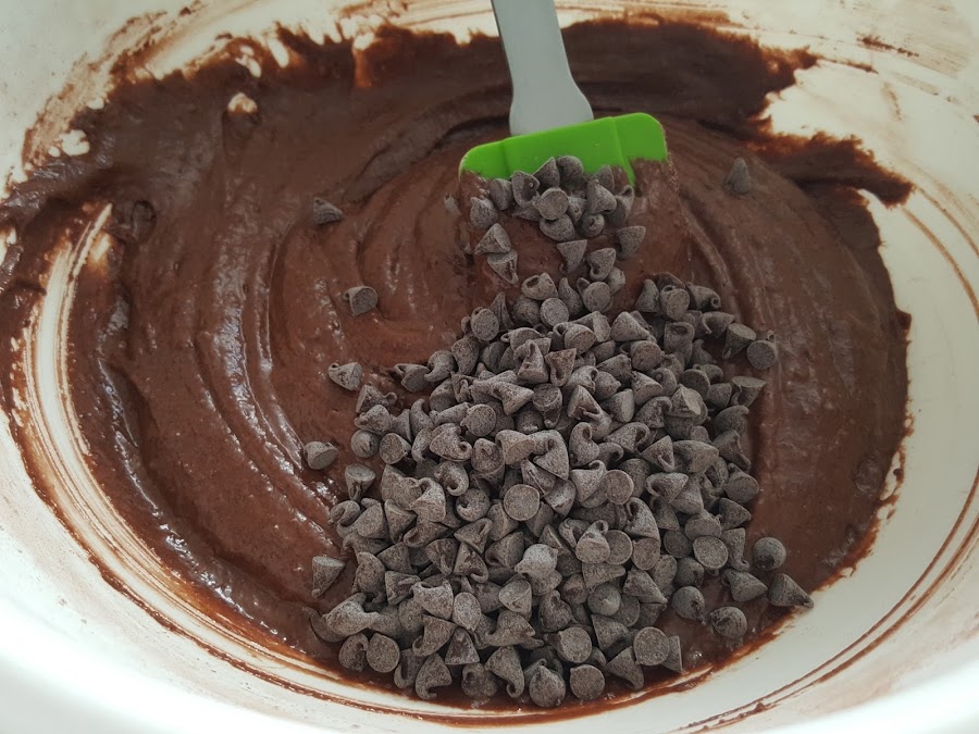 4. - Añadimos casi todas las pepitas de chocolate, reservando algunas para decorar por encima.