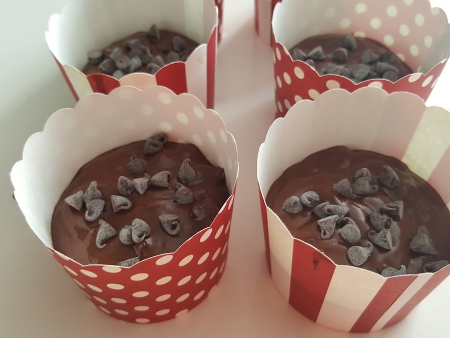 6. - Decoramos con unas pepitas de chocolate por encima, y metemos al horno entre 15 y 20 minutos, esto siempre dependerá de cada horno. Pinchad con un palillo hasta que os salga limpio.