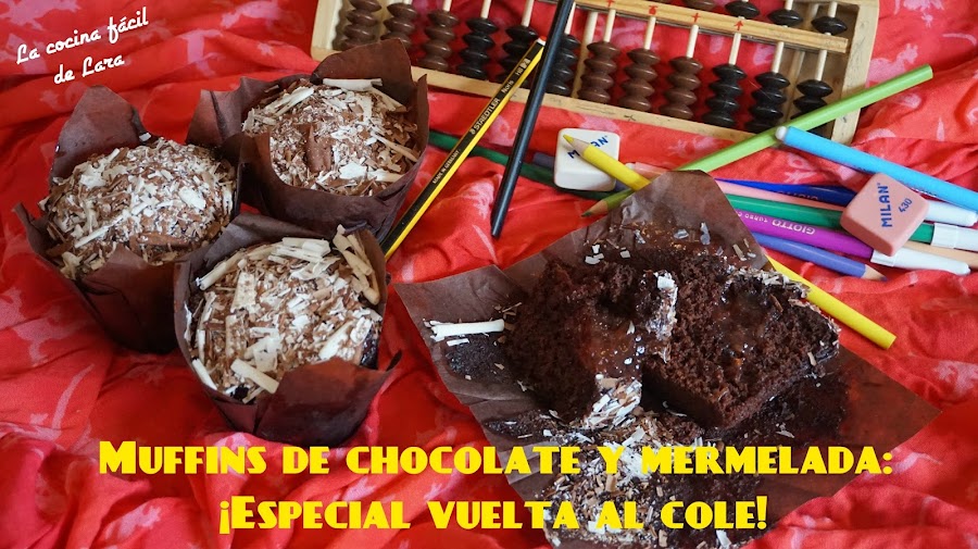 Estos muffins de chocolate y mermelada de fresa son ideales para merendar y podrás congelarlos y tenerlos siempre a mano. ¡A mi me recuerdan a unas mini sacher! Y lo mejor de esta receta es que no tendréis que perder el tiempo en pesar nada.¡Todo lo podréis medir con una taza de desayuno!