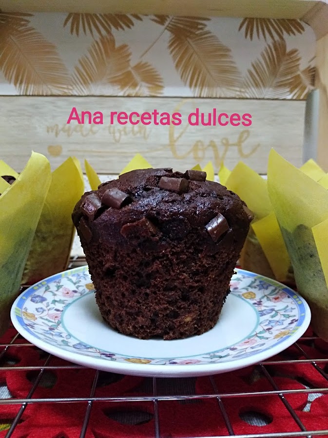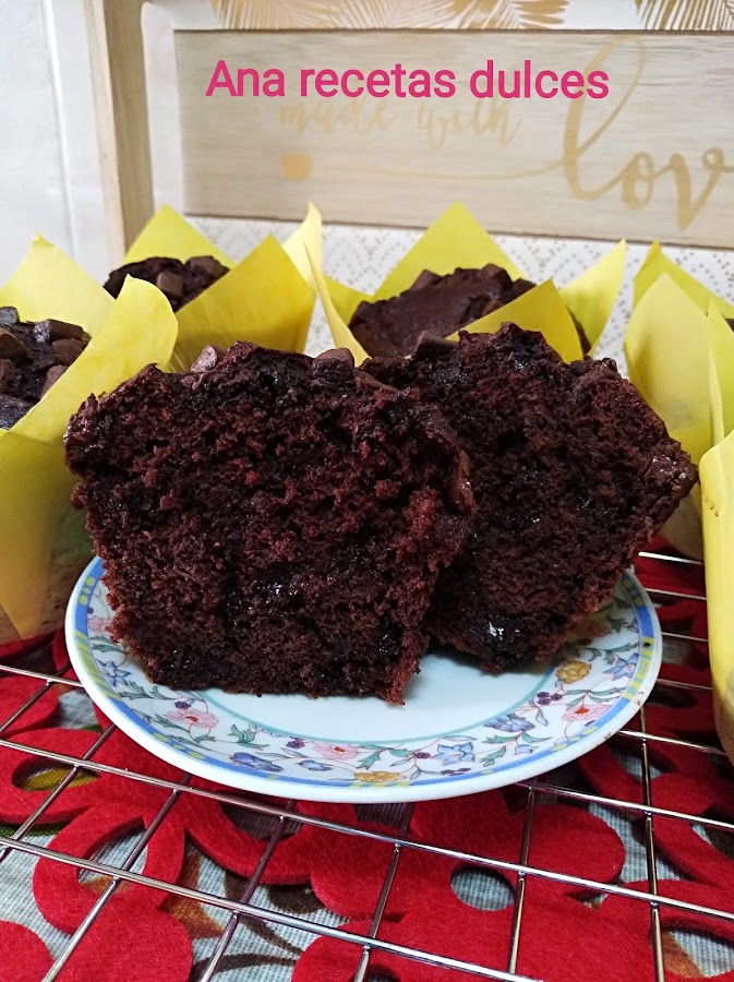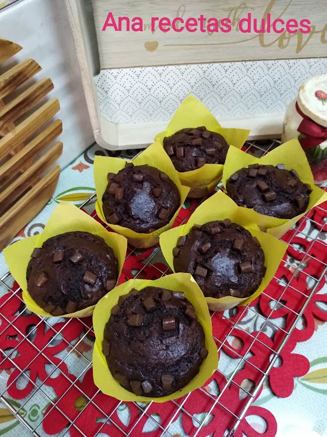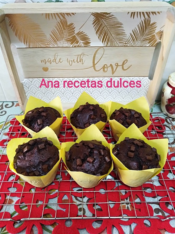 Rellenamos las cápsulas para muffins, repartimos por encima las pepitas de chocolate o los chunks de chocolate, metemos en el horno precalentado a 180° grados, durante 30 minutos aproximadamente.