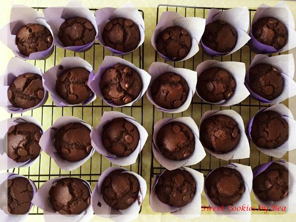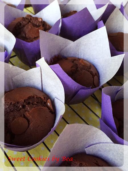Unos muffins de chocolate, con muffins de chocolate y que los que el sábado por la noche los comieron dijeron que estaban muy ricos y que se parecían a los Muffins supreme de Starbucks, sintiéndolo mucho no los he probado y no puedo decir si se parecen.