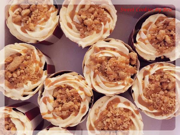 y estos unos cupcakes de calabaza y chocolate cubiertos de una crema de calabaza, crumble de almendra y sirope de dulce de leche.