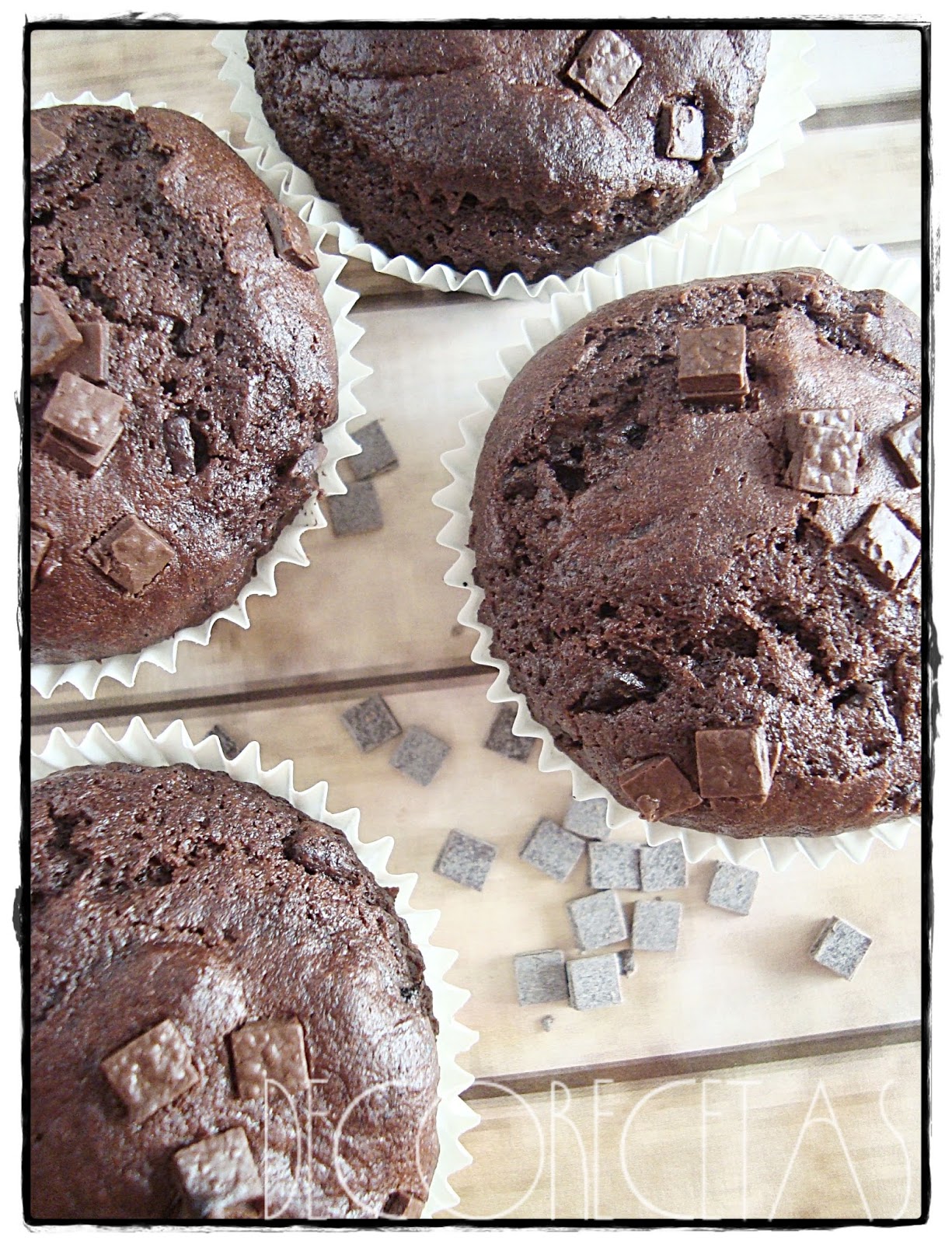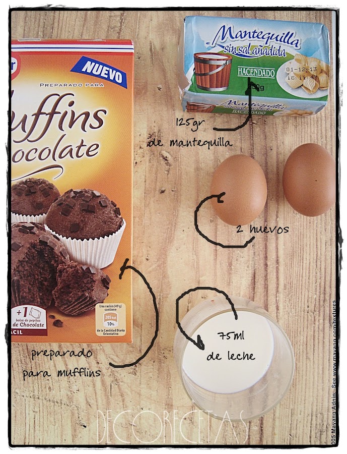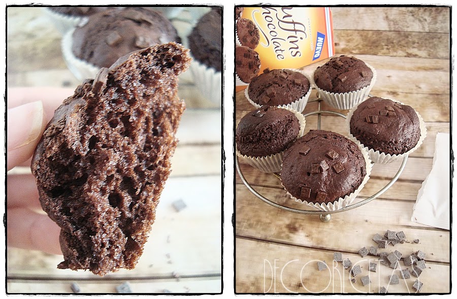 Como nos indica el fabricante, basta con batir los huevos, añadir mantequilla derretida, leche y preparado para muffins, verter en los moldes y hornear 25 minutos a 180º con calor arriba y abajo.