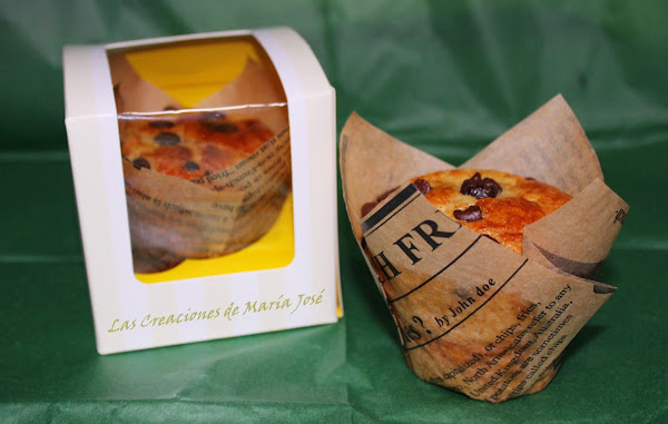 Hice unos cuantos Muffins para mi amiga Esmeralda, que hoy quede a tomar café con ella y el de la cajita era para ella con los demás ¿a que me quedaron chulos? Según ella estan bueniiiisimos. Yo probare mañana el otro de la foto, que operan a mi marido y me lo llevo para comerlo con un café. Estoy teniendo mucha fuerza de voluntad para no comerlo antes porque tiene una pintaaaaaa. Quiero dar las gracias a Packnwood por todo lo que me han mandado que me encanta y le estoy dando buen uso.