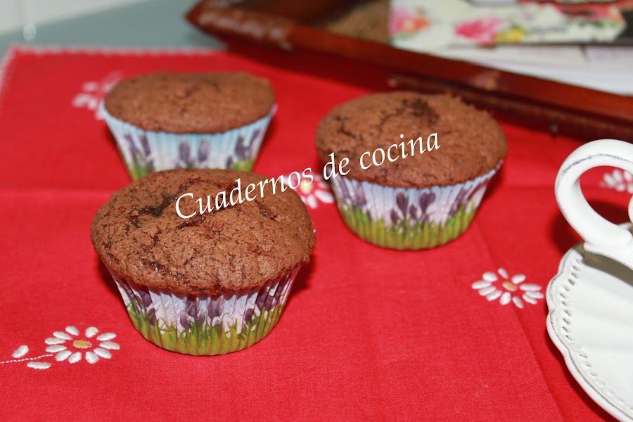Necesitaba chocolate, y algo para acompañar un vaso de leche. Lo malo, que no tenía chocolate fondant en casa, ni cacao puro para hacer ninguna de las recetas que se me antojaban de mi libro de repostería?. Así que me metí en la blogosfera y voilà, allí estaban, muffins de Cola Cao?