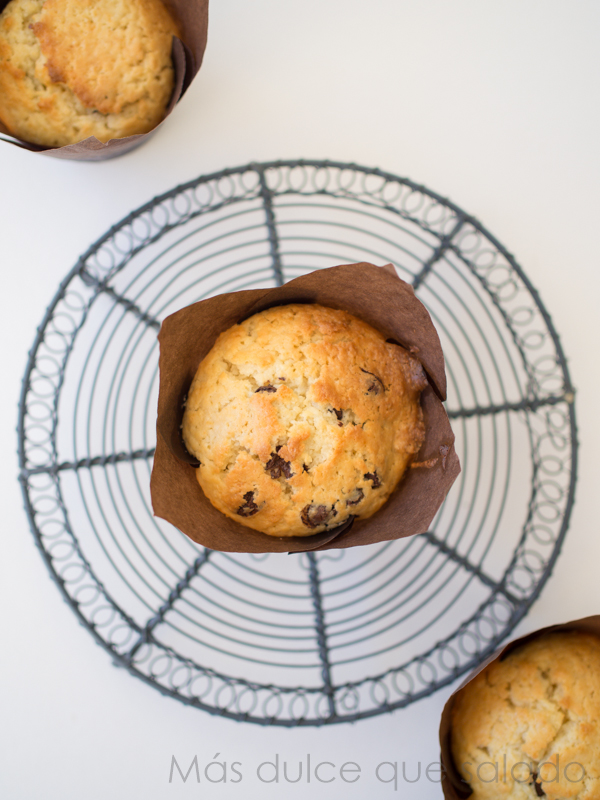 Estos muffins son muy cremosos, porque además de créme frâiche llevan queso cremoso, y por supuesto algo que no puede faltar, chocolate, concretamente una pepitas de chocolate negro que le van de miedo. Y es que cuando la tienda online Santa Grata me hizo llegar estas pepitas de chocolate junto con otros productos que ya os iré enseñando, me fui directa a elaborar esta receta.