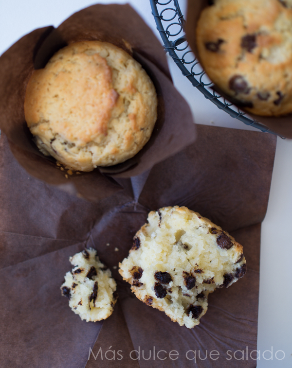 Tengo que deciros que mi hija Carmen, que es super chocolatera, me dijo que como ya les había hecho la foto que los podíamos pinchar con una jeringuilla y rellenarlos de chocolate fundido. Me quede muerta!! Vamos, que 100 gr de pepitas de chocolate le parecieron una miseria!!. Así que si vosotros también sois de los muy chocolateros como mi hija, añadirles un puñado más de chips de chocolate, sin miseria!!