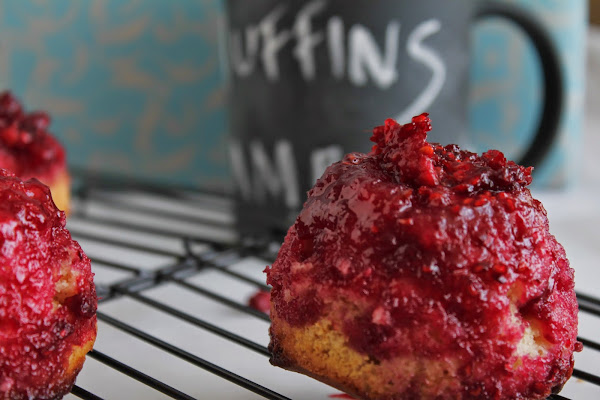 Si sois de los que os gustan los famosos muffins de arándanos, estos tenéis que probarlos sí o sí. No tienen nada que ver, la elaboración es diferente, pero la jugosidad y la mezcla de sabores, me parece deliciosa. Mientras que en el muffins de arándanos empleamos la fruta entera, que una vez horneada se rompe en boca. Aquí se prepara una salsa de frambuesa y la ponemos en el fondo del molde. La frambuesa, a diferencia del arándano se deshace al ser horneada.