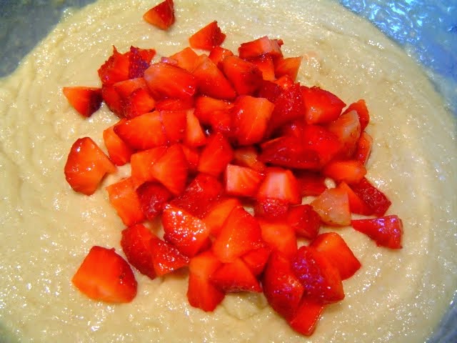 Mezclamos delicadamente para que las fresas se incorporen a la masa.